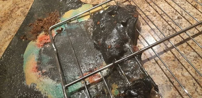 32. "Я все равно его съела. 4 часа готовки, за полчаса до начала праздника торт упал на пол. И я насладилась каждым кусочком"