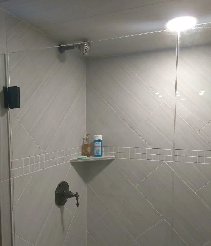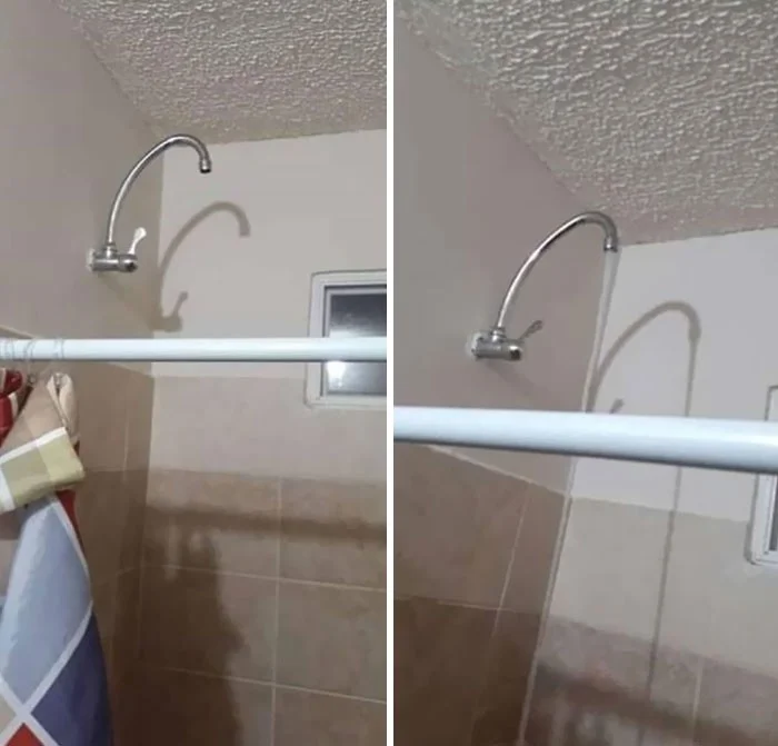 27. "Маме сделали ремонт в гостевой ванной, пока она была за городом. Она хотела, чтобы лейка душа находилась высоко, чтобы высоким людям не приходилось наклоняться или отклоняться назад. Она приехала домой и обнаружила это: лейка стреляет водой прямо в противоположную стену"