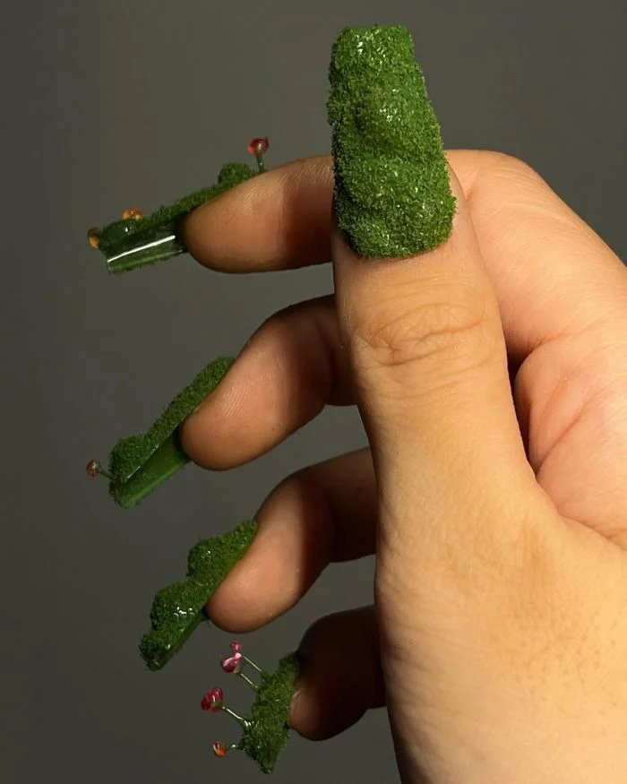5. Немного зелёного газона на ногтях