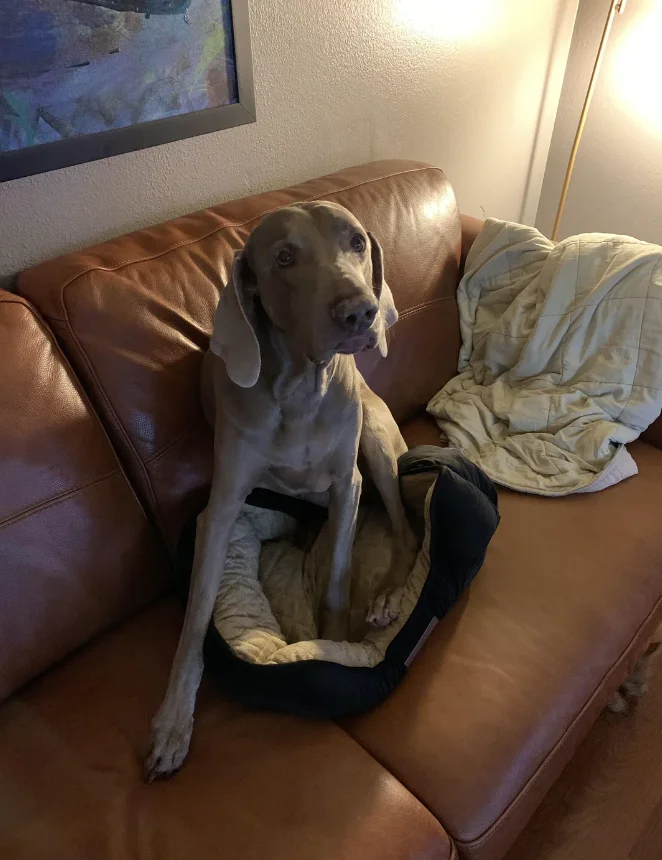 11. "Мы не проверили размеры лежанки перед заказом.. Но кажется, нашей собаке всё равно нравится"