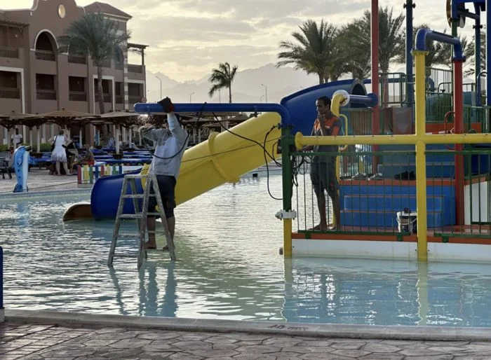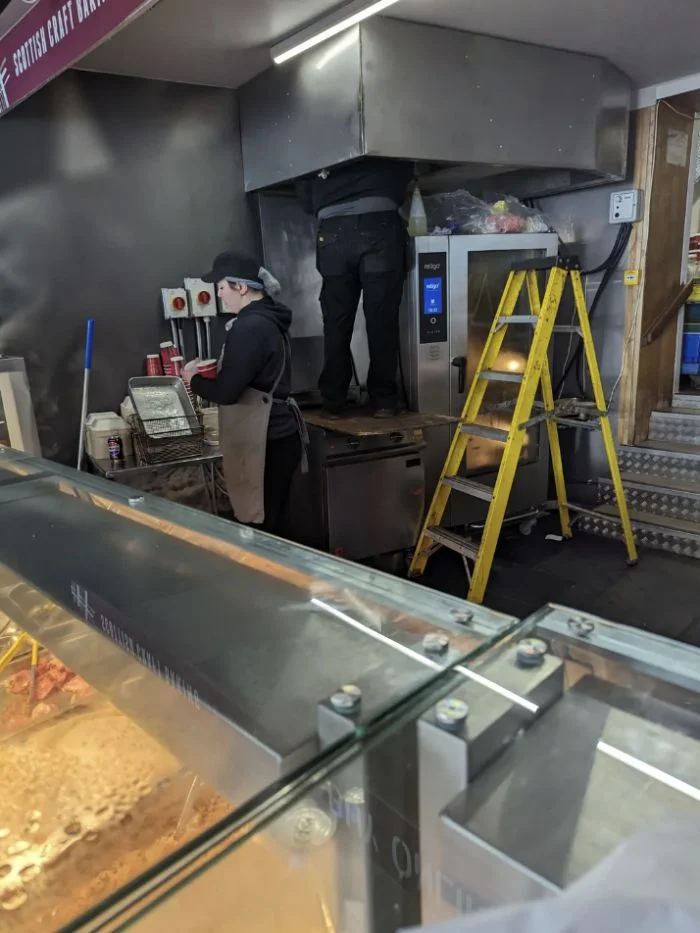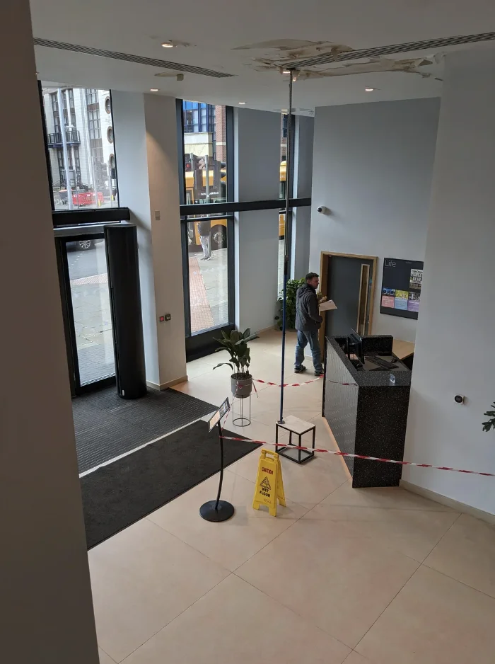 4. "У нас в офисе протекает крыша. Ремонтники приняли меры. Но администратор стоит за стойкой под всем этим"