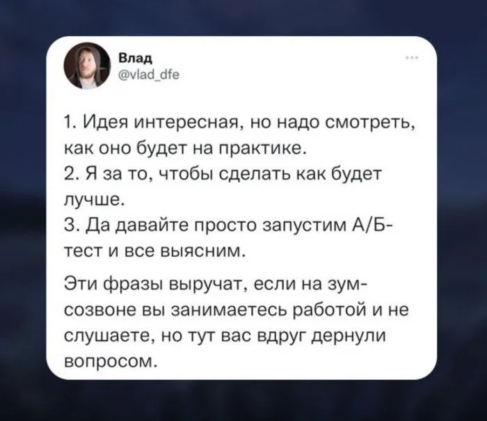 1. Странно, что нет пункта «Купается в деньгах и ищет маленькую ошибку, из-за которой ничего не работает»