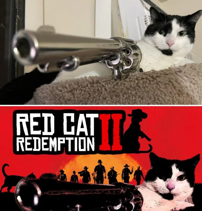В основе фотожабы — отсылка к одной из популярнейших компьютерных игр «Read Dead Redemption» в жанре вестерн.