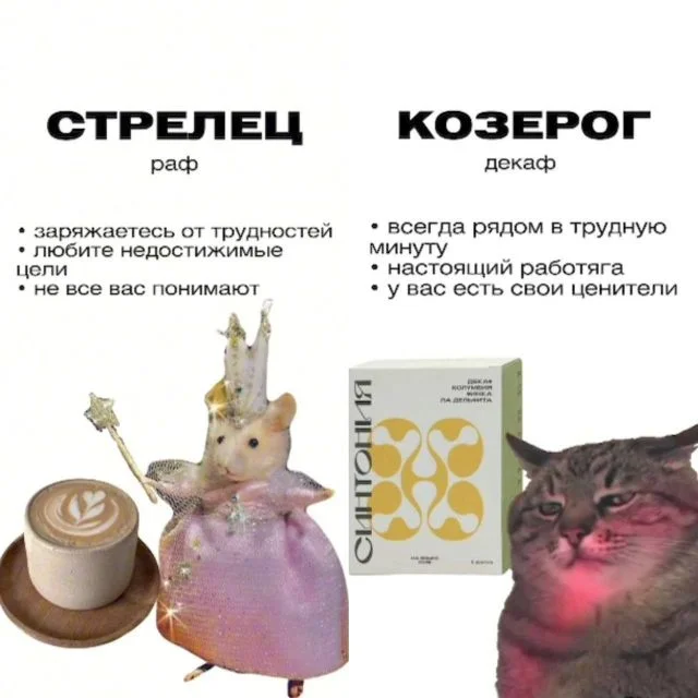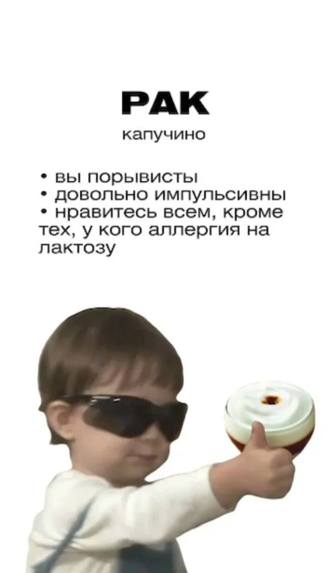 Ну что тут скажешь, наши астрологи из социальных сетей нынче работают, не покладая рук! Совсем недавно мы узнали, какие "сырки подходят каждому знаку зодиака. А теперь настала очередь кофе! Так что сегодня на перерыве начинаем заказывать кофе правильно. Звезды не лгут.