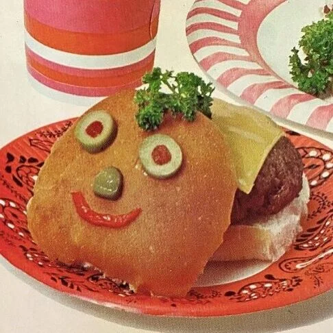 Этот чизбургер был найден в кулинарной книге Бетти Крокер 1965 года «Новые мальчики и девочки».