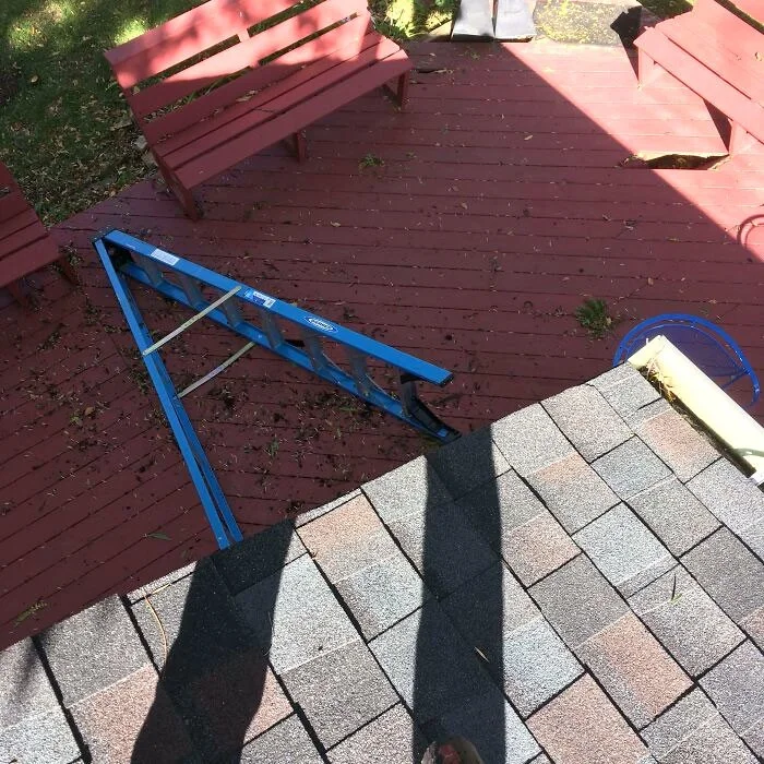 12. «Один дома. Чистил крышу и водостоки, когда услышал грохот падения лестницы»