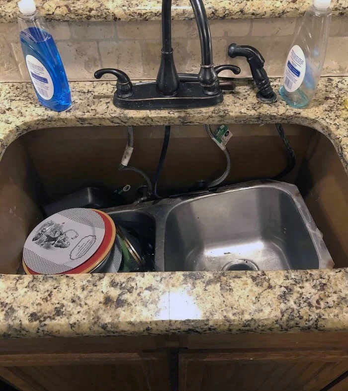 19. «Я мыла посуду, когда раковина решила выпасть из тумбы. Впервые моя странная привычка коллекционировать большие банные полотенца оказалась полезной»