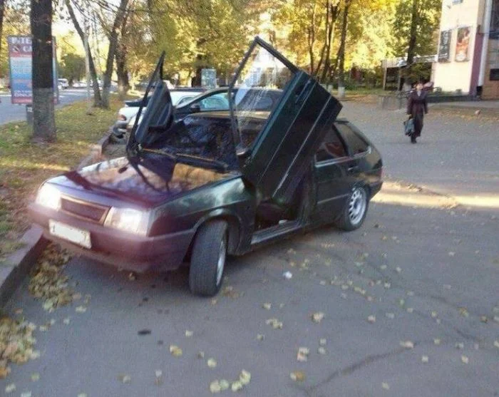 Все в мире мечтают о Тесле, в то время как в России уже давно изобрели девятку вот с такими откидными дверьми. Прям как из фильма "Назад в будущее".