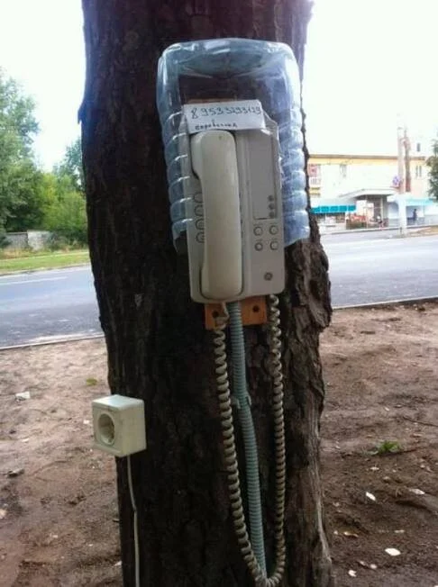 Такое уж точно не прейдёт в голову вашим американцам. Тут вам телефон и розетка, прям все удобства. Осталось поставить стул, стол и электро чайник. Будет вообще пушка!