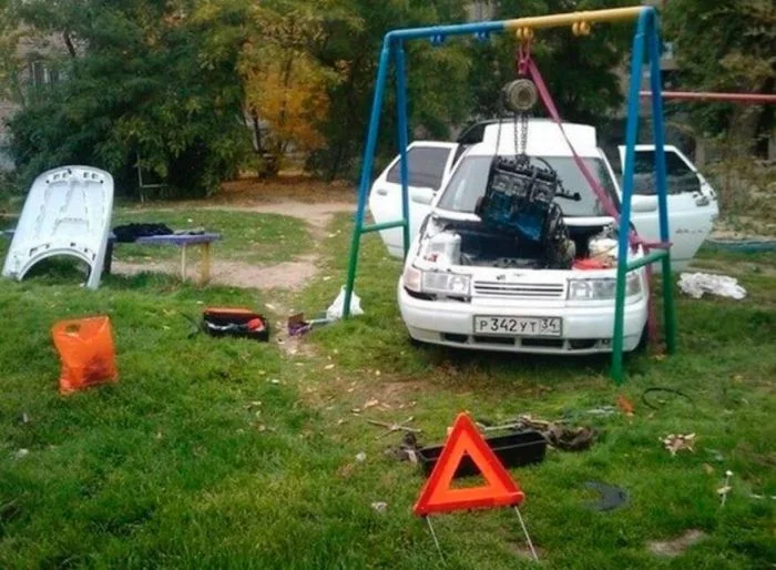 А всё думал, как же можно использовать стойки от качелей, когда те уже сломались? Вот вам и выход из ситуации. Не пропадать же добру. Согласны?