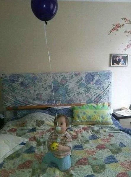 Интересный способ, как не мыть соску постоянно. Привяжите её к воздушному шарику, это сэкономить вам нервы и силы. Молодые мамы и папы вы тут? Как вам такая идея?
