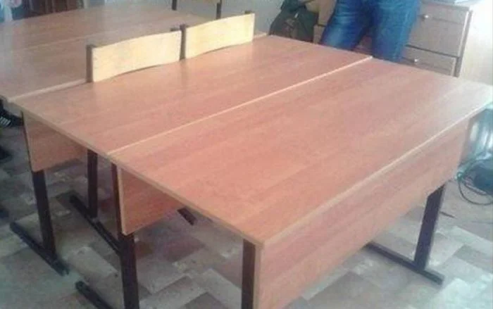 Ещё один классный пример того, что мы всегда можем выйти из даже самой тяжёлой ситуации. Что ведите вы? Парты и стулья? А вот наши герои видят сборный и разборный теннисный стол.
