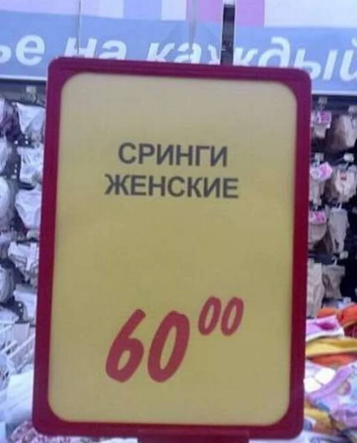 Наверное, имелось в виду стринги женские. Вот, оказывается, как пропуск всего одной буквы меняет смысл всего названия. Сринги, мы такое не покупаем и без них справляемся.