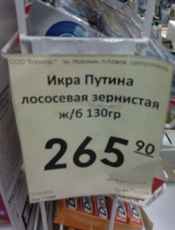 Я пробовал разную икру: икру красную, щуки, минтая, заморскую кабачковую и баклажанную. Но вот икры Путина я не видел. Наверное, тут имелось в виду, что икра путассу, ну или что-то в этом роде.