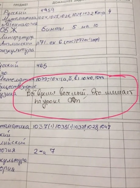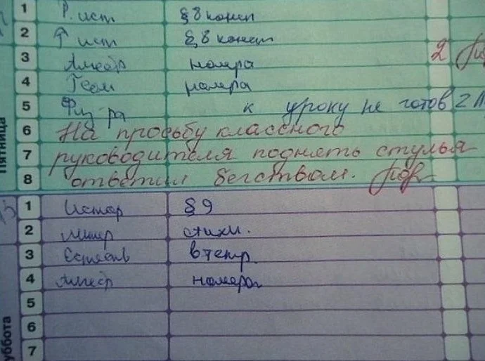 Запись в дневнике дочери второклашки. Конечно, имела серьёзный разговор со мной, но сколько мне стоило сил сдерживать смех. Учитель сказала дочери, что ставит двойку и оставит на второй год. Дочь сказала, что ей всё равно, так как она уезжает в другой город и школу. Судя по записи не только сказала , но и жестами усилила.