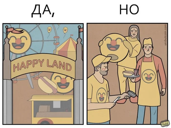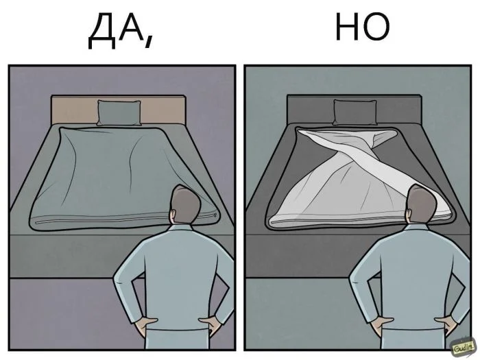 "Да, Но" - популярная серия комиксов от автора Гудим, который показывает обратную сторону разных событий. Не зря говорят, что даже у медали есть другая сторона, ведь всё в этом мире зависит от того, под каким углом смотришь.