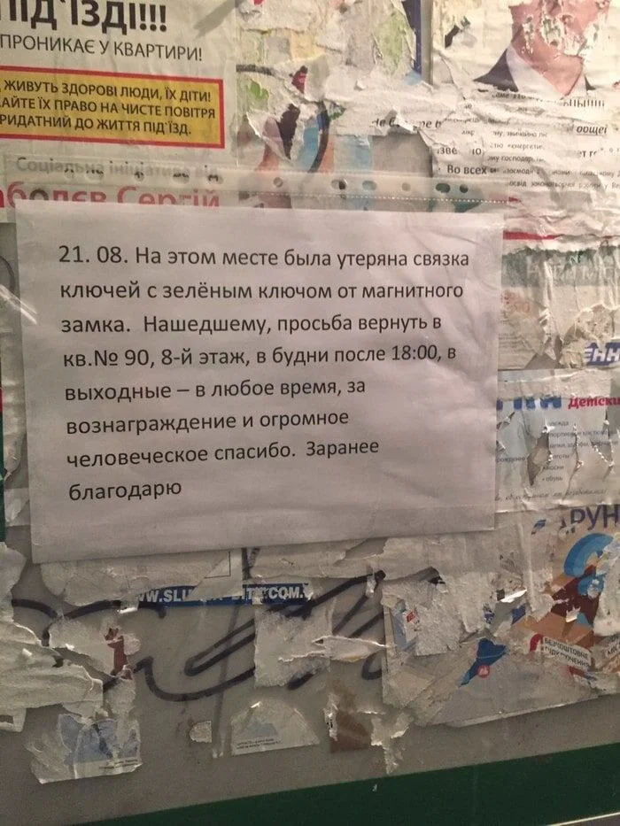 Вот во что вы превратили объявление, когда наклеили на него другое!