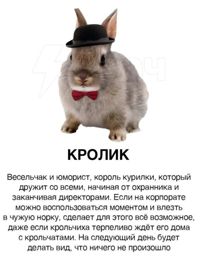 Людям нравится проходить всякие прикольные и дурацкие тесты. Например, "Кто вы из Гарри Поттера", "Какое ваше тотемное животное" и так далее. А автор этой классификации офисных типов сотрудников решил выяснить, кто какой грызун. Получилось немного жестковато, но... правдиво.