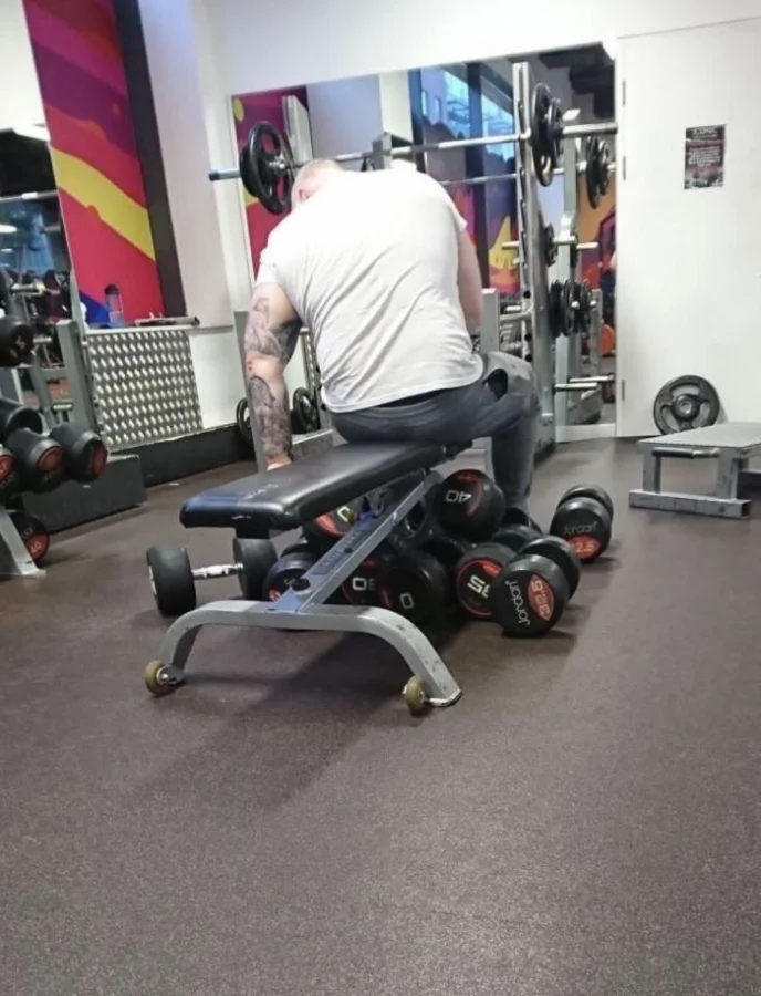 6. «Этот парень устроил настоящий бардак из гантелей».