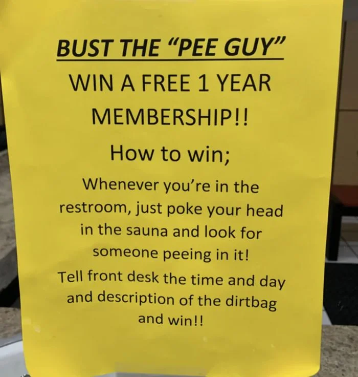 12. «Сыграй в игру: поймай "писающего мальчика" в сауне и получи годовой абонемент».