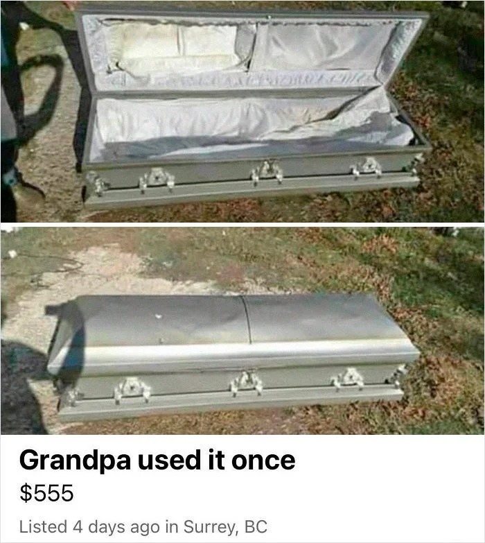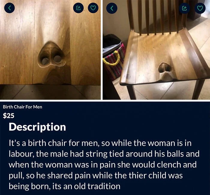 13. "Мы атеисты, но наш сын был верующим. В этом кресле он сидел, когда вознесся. Продаем, потому что оно больше не подходит к обстановке. Без торга"