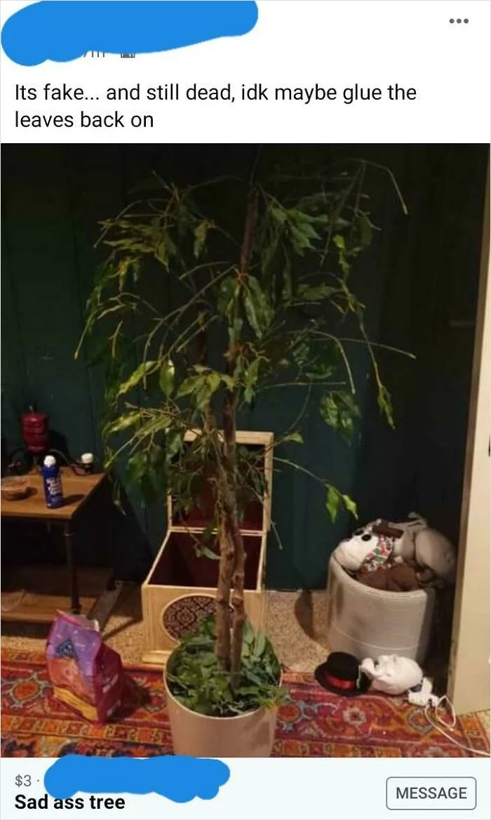 9. "Оно искуственное... и все равно мертвое, хз, попробуйте приклеить листья обратно"