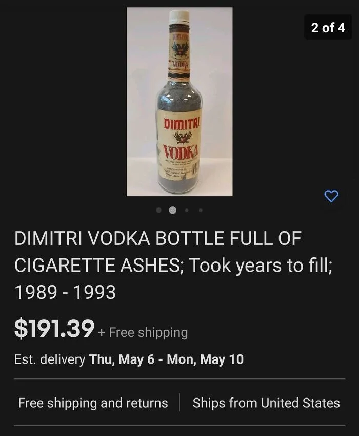 31. Водка, наполненная сигаретным пеплом, заполнялась с 1989 по 1993 год. 191 доллар 39 центов