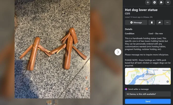 33. Скульптура из сосисок - влюбленные держатся за руки, 15 долларов