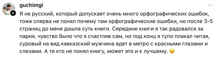 Использование грамматических ошибок в начале книги — это мощный художественный прием, через который Киз передает не только уровень развития главного героя, но и его искренность, детскую наивность и непонимание окружающего. Мы видим, как изначально Чарли радуется простым вещам, почти не осознавая, что над ним смеются и используют. Его ошибки передают честность, уязвимость и необыкновенное упорство. Этот стиль помогает читателю сблизиться с героем, увидев мир его глазами и ощутив его простодушную радость от, казалось бы, обыденных вещей.