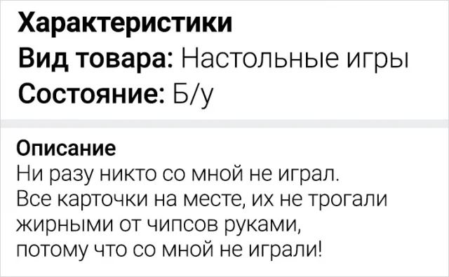 Покупать и продавать вещи в интернете - это дело обыденное. Однако, порой, это очень весело, так так как иногда встречаются такие кадры, что диву даешься. Давайте поднимем себе настроение и поглядим подборку смешных объявлений с просторов Сети.