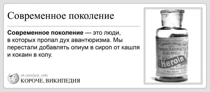 Представьте, в семье все правильные и интеллигентные, но есть тот самый родственник, который любит пошутить по совершенно любому поводу. И вот такой брат-близнец есть у Википедии. "Короче, Википедия" - альтернативная шуточная энциклопедия с расшифровками разных фраз и понятий. Авторы собирают разные картинки из открытых источников и добавляют смешные подписи.