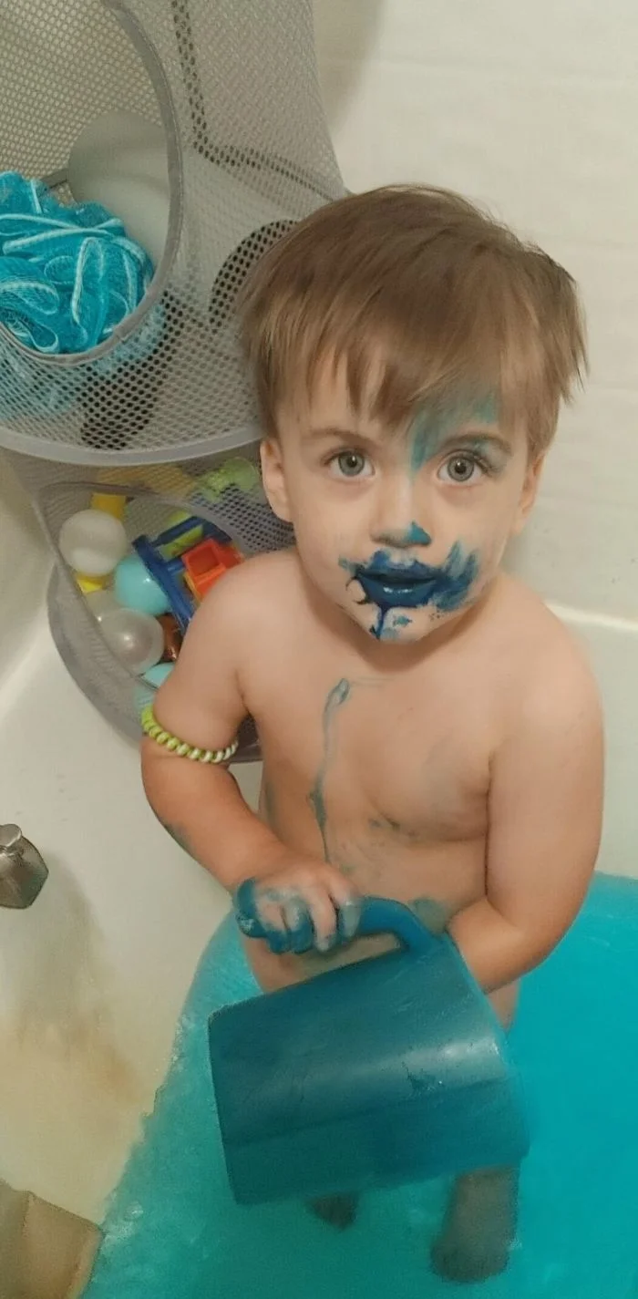 15. Сын взял пищевой краситель с кухни, и стал похож на смурфика