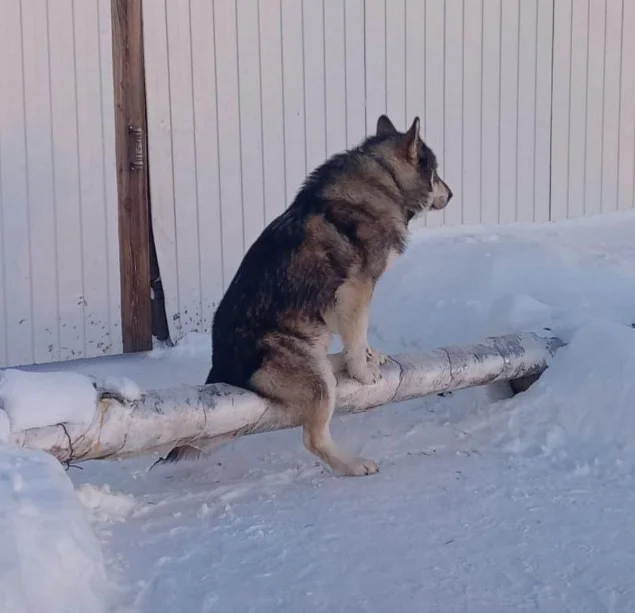 Русские собаки славятся своим суровым характером. Где еще вы увидите пса, который в зимнюю стужу сидит на трубе отопления, словно на подогретом кресле?