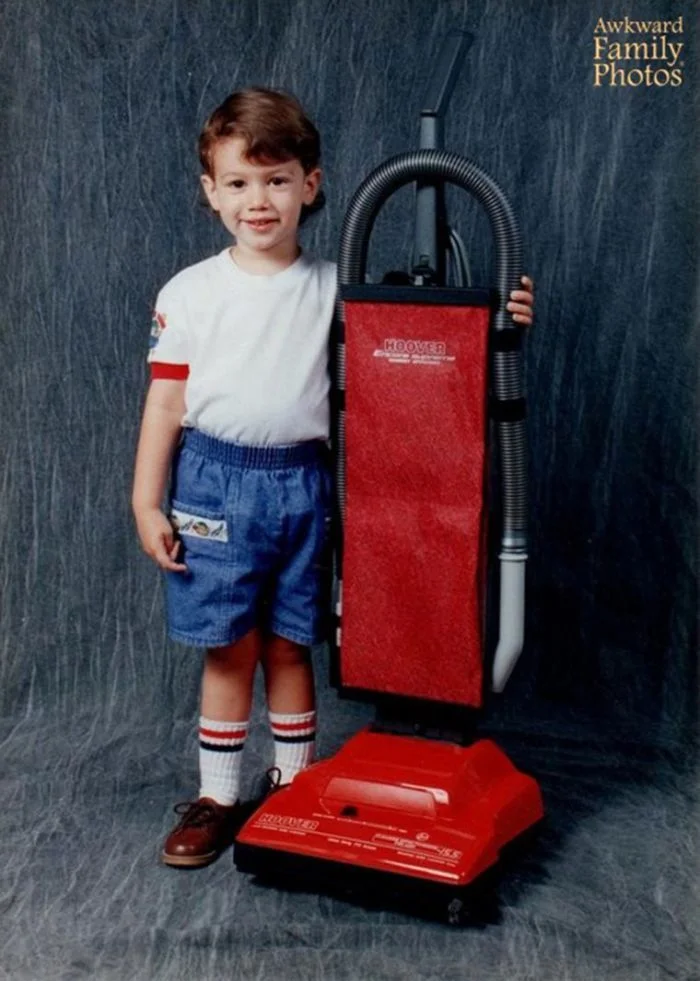 10. "Когда мой парень был маленьким, он фанател от бытовой техники. Во время фотосессии в студии он спросил, нет ли пылесоса для фото"