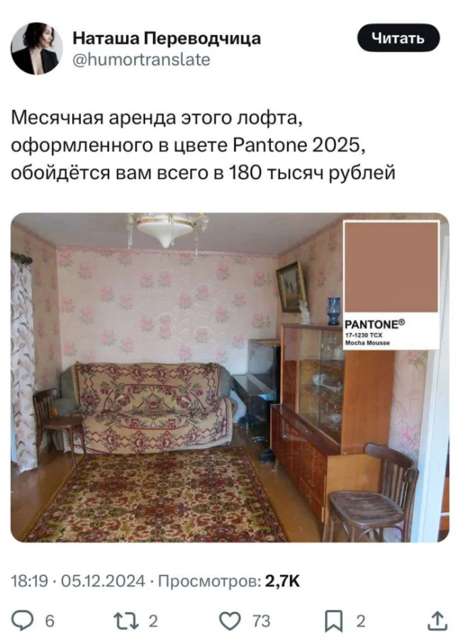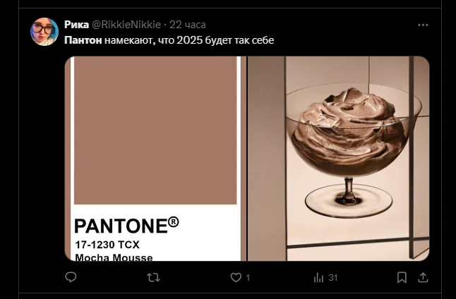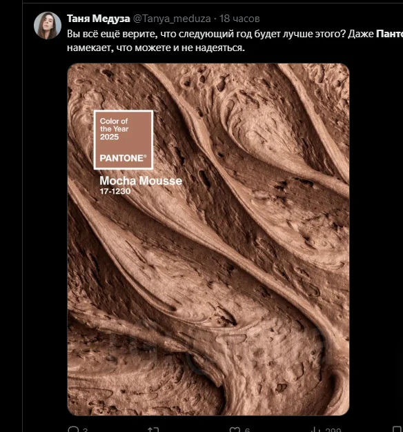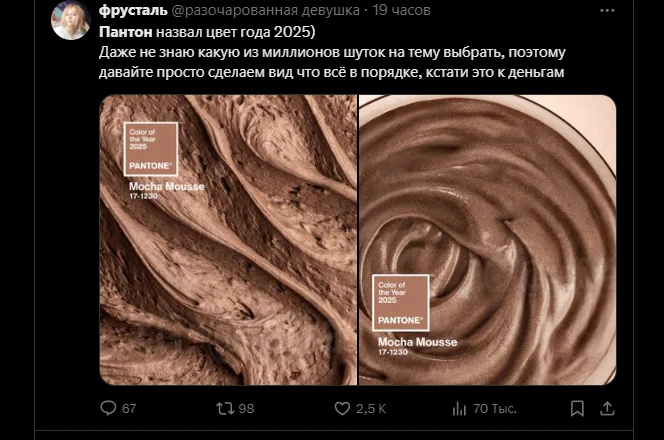 Однако пользователи в интернете не согласились с таким восприятием. По их мнению, шоколадный мусс — это далеко не первая ассоциация, которая возникает при взгляде на этот оттенок. Вместо уюта и тепла многие увидели не самые радужные перспективы.