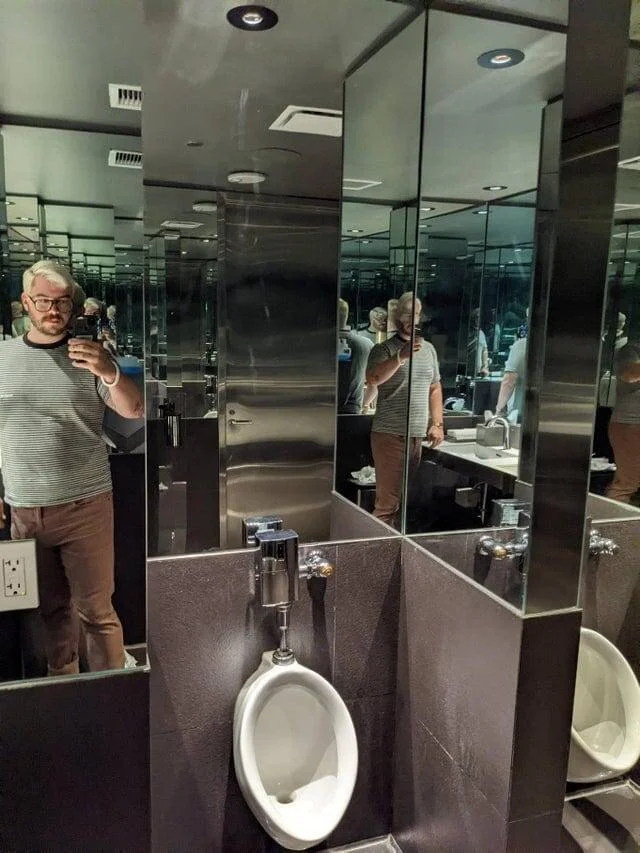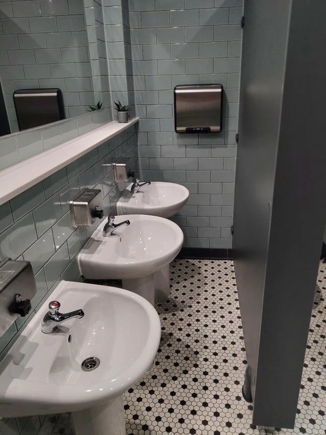 Прекрасный вид на внутренний дворик из нового туалета в офисе