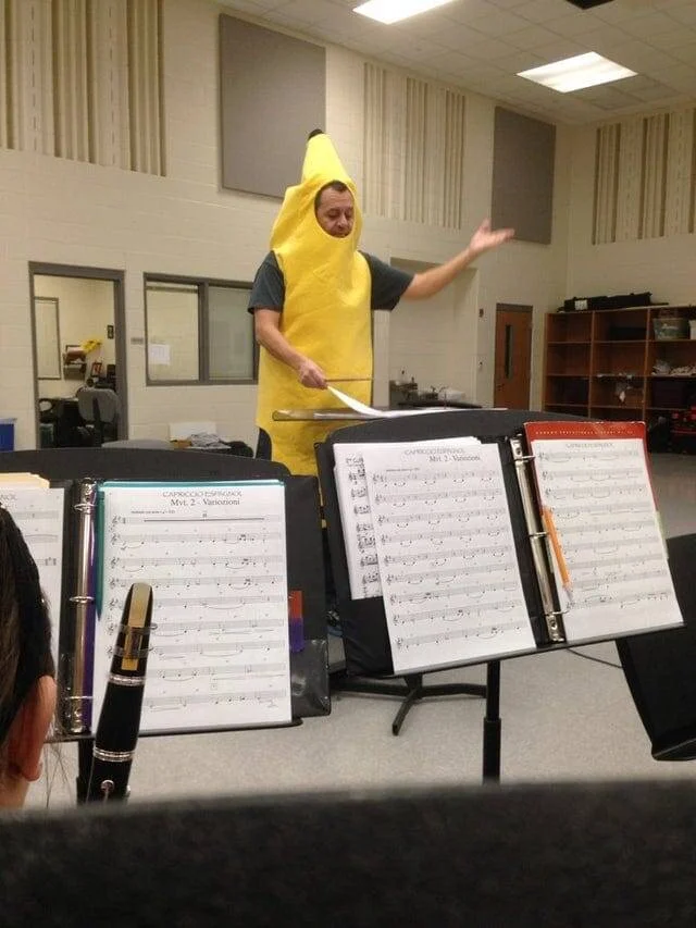 "Наш дирижёр проспорил и весь день работал в костюме банана"