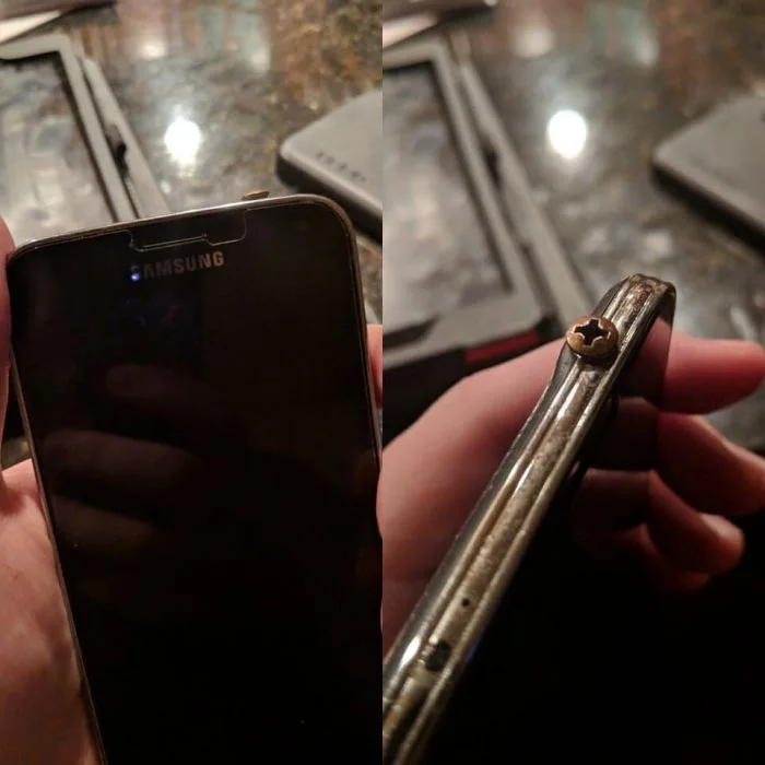 13. «Клиент сказал, что его телефон не заряжается должным образом, потому что аккумулятор холодный. Он решил, что разогреть его в тостере — хорошая идея»