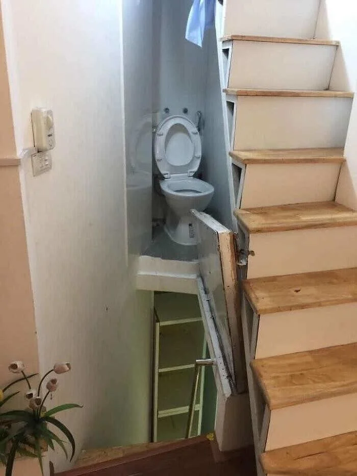 4. Дизайнер встроил унитаз в малюсенькое пространство под лестницей