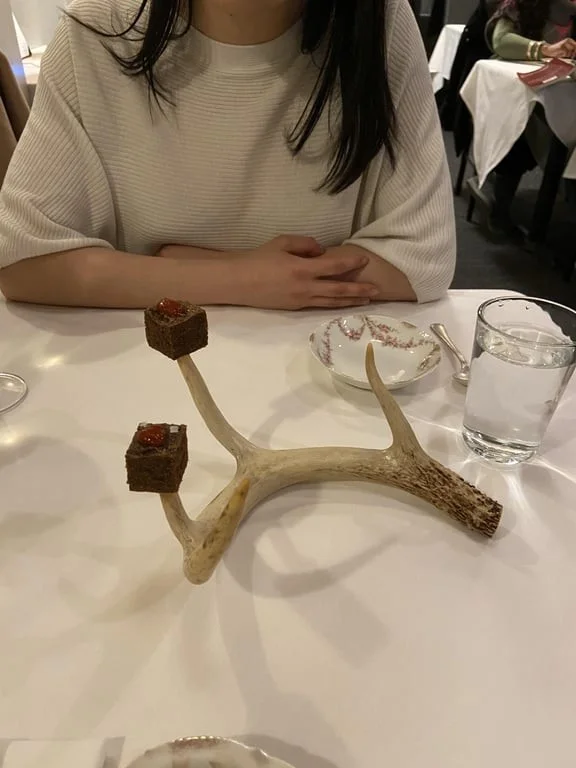 17. Оленьи кубики, поданные на рогах. Как оценить вкус в таком антураже?