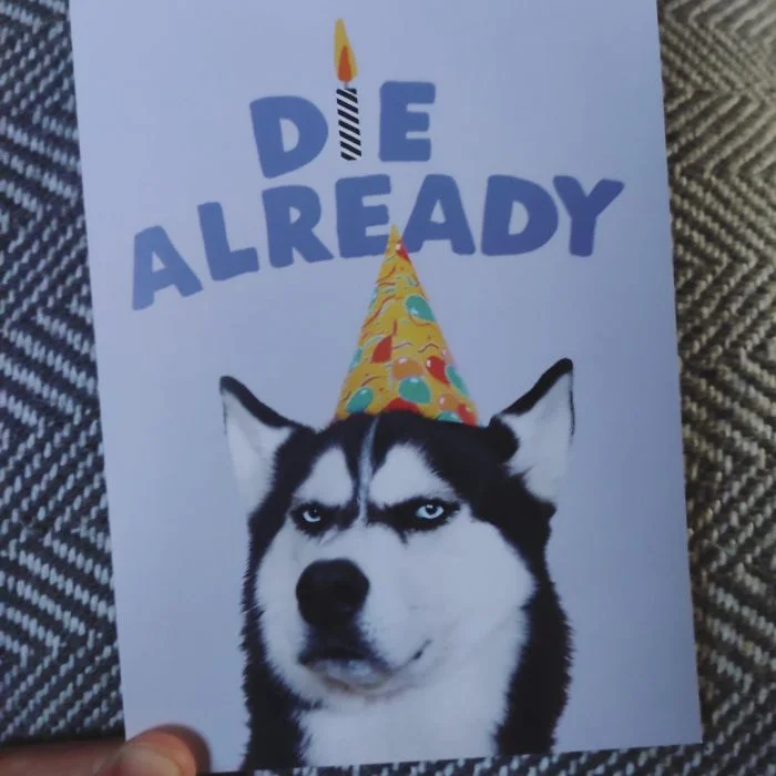 3. Моя племянница, которой всего четыре года, купила мне открытку на день рождения. Её выбор пал на "милую собачку", хотя текст гласил: "Умирай уже".
