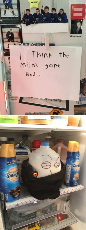 6. Молоко оказалось "испорченным", как сказала моя дочь, тщательно нюхая стакан.