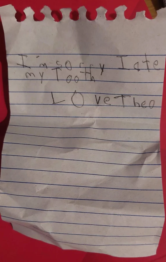19. Письмо зубной фее от Тео: "Прости, я проглотил свой зуб".