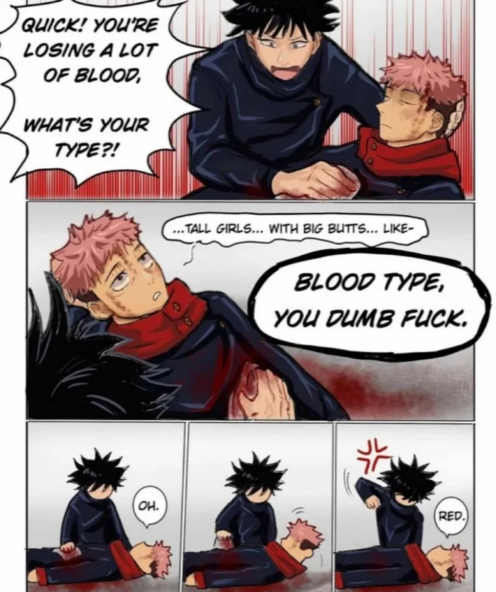 - Ты теряешь много крови! Какой у тебя тип?!