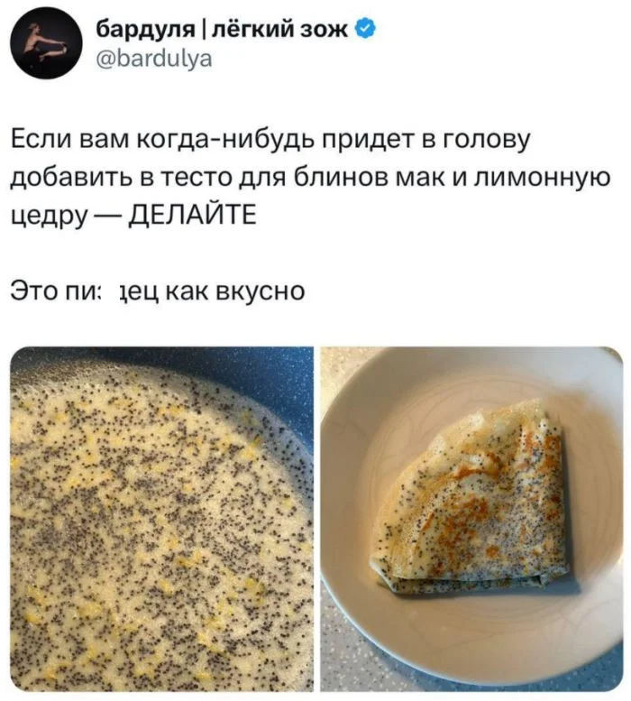 11. В Х появился рецепт блинов с маковой начинкой. Кто-нибудь пробовал?