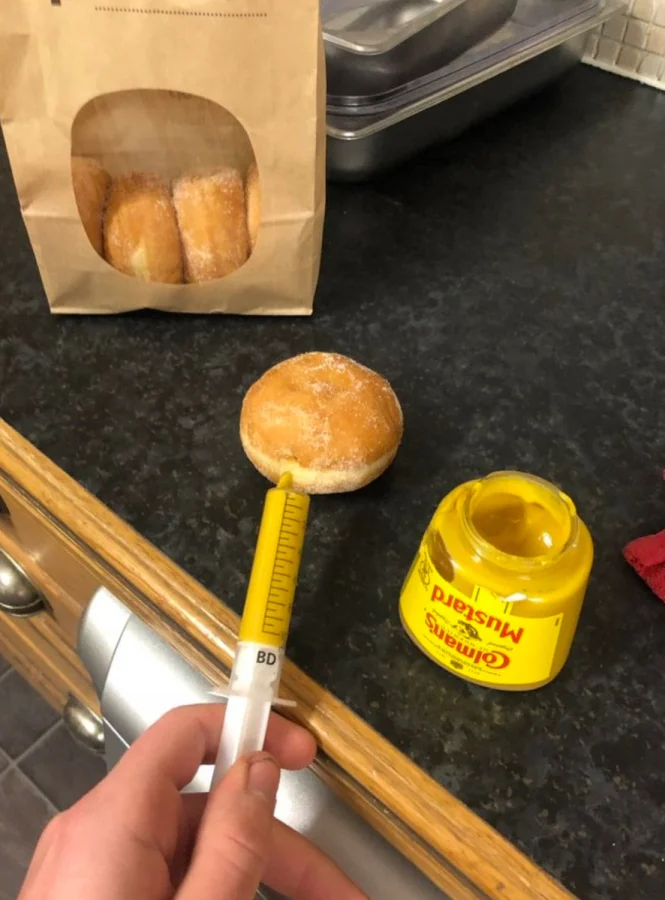 Сотрудник постоянно воровал чужую еду, что сильно раздражало коллег. В итоге решили добавить горчицы в пончики.