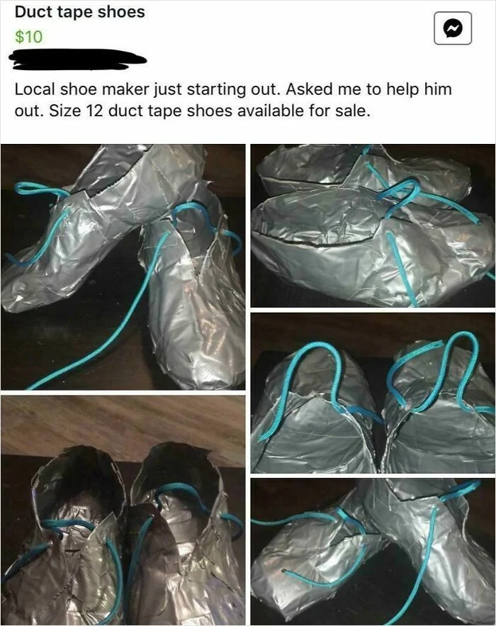 Существует мнение, что один человек считает мусор сокровищем другого. Однако, когда речь заходит о продаже б/у вещей, ситуация может быть совершенно иной. От обуви, сделанной из скотча, до устрашающих кукол — наши товары далеко не всегда вызывают интерес у покупателей. Мы собрали самые удивительные объявления с западных маркетплейсов.