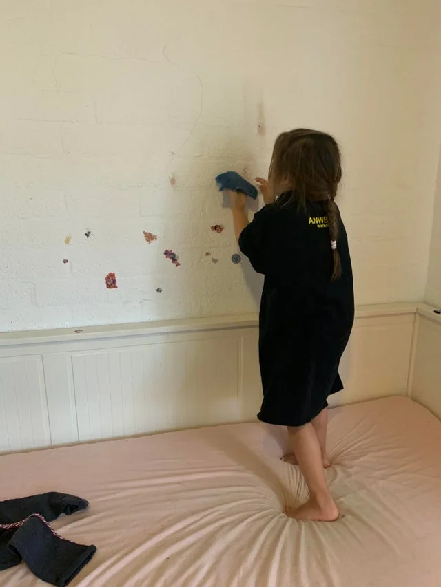Проснулся с мигренью и обнаружил, что моя дочь рисовала на стенах (краской и бальзамом)