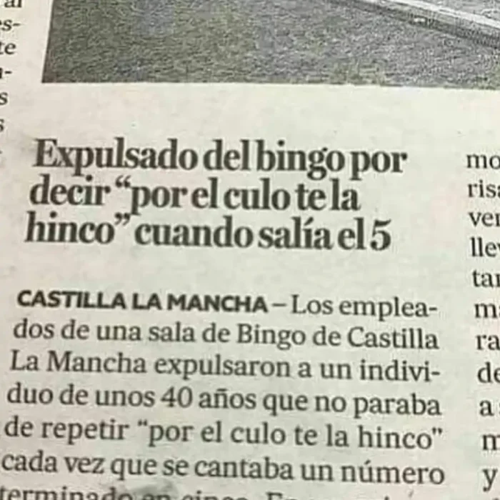 А вот новость - мужика выгнали из зала для игры в бинго (лото) за то, что он орал эту фразу каждый раз, когда называли пятерку.