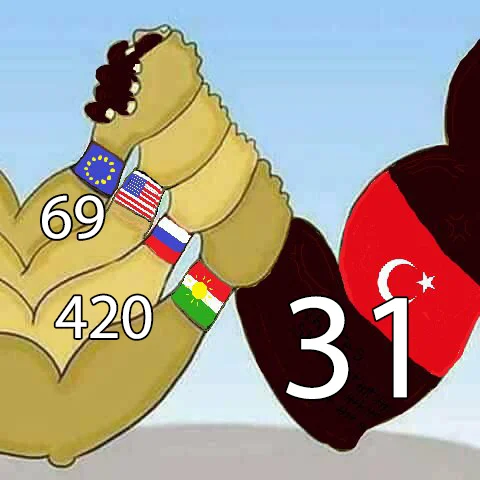 Дальше у нас турецкий и число 31. Тут уже не рифма, а само число. На турецком 31 (otuz bir - Отус бир) означает "мастурбировать". Дело в том, что дословно это будет el çekmek (эл чекмек - руку тянуть), но el (рука)на старотурецком было ال, что можно было расценить и как число 31. Так что сначала говорили "тянуть свою 31", можно и просто 31.